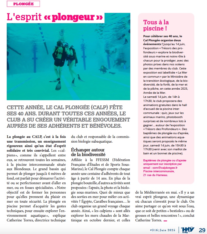 Home40 ansL’Haÿ Le Mag parle de notre expo ! L’Haÿ Le Mag parle de notre expo ! La Com du CALP2 juin 202510 septembre 2025 Merci à la mairie pour la mise en avant de notre exposition « Trésors des profondeurs » dans l’édition #316 de L’Haÿ Le Mag (juin 2025) : https://www.lhaylesroses.fr/images/LEMAG/Mag_lhay_316_stdc.pdf